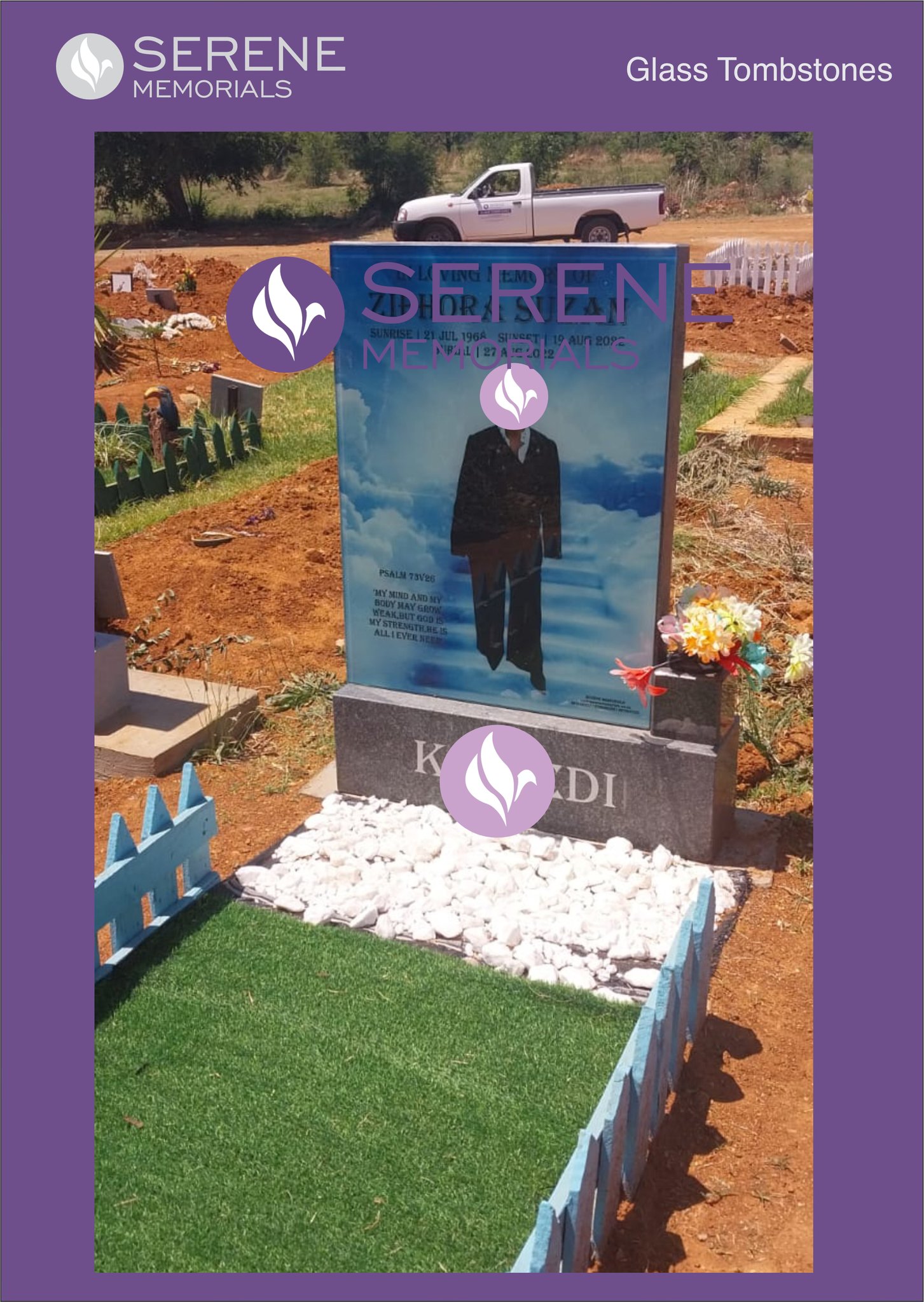 Break away from the black and grey world of traditional granite and stone gravestones, and invest in a glass memorial monument, in brilliant colour, by using your favourite photo or images of your loved one.